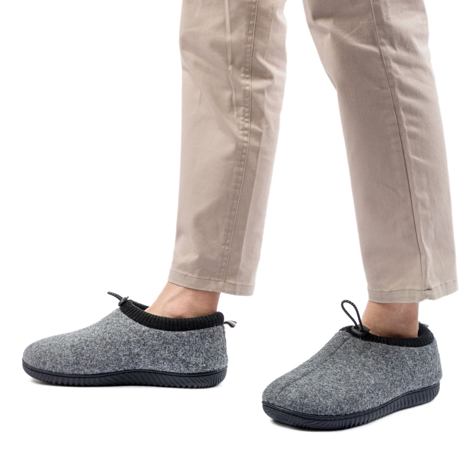 - Rubber soles with anti-slip traction lets you wear them indoor or out to grab the mail or take out the trash.