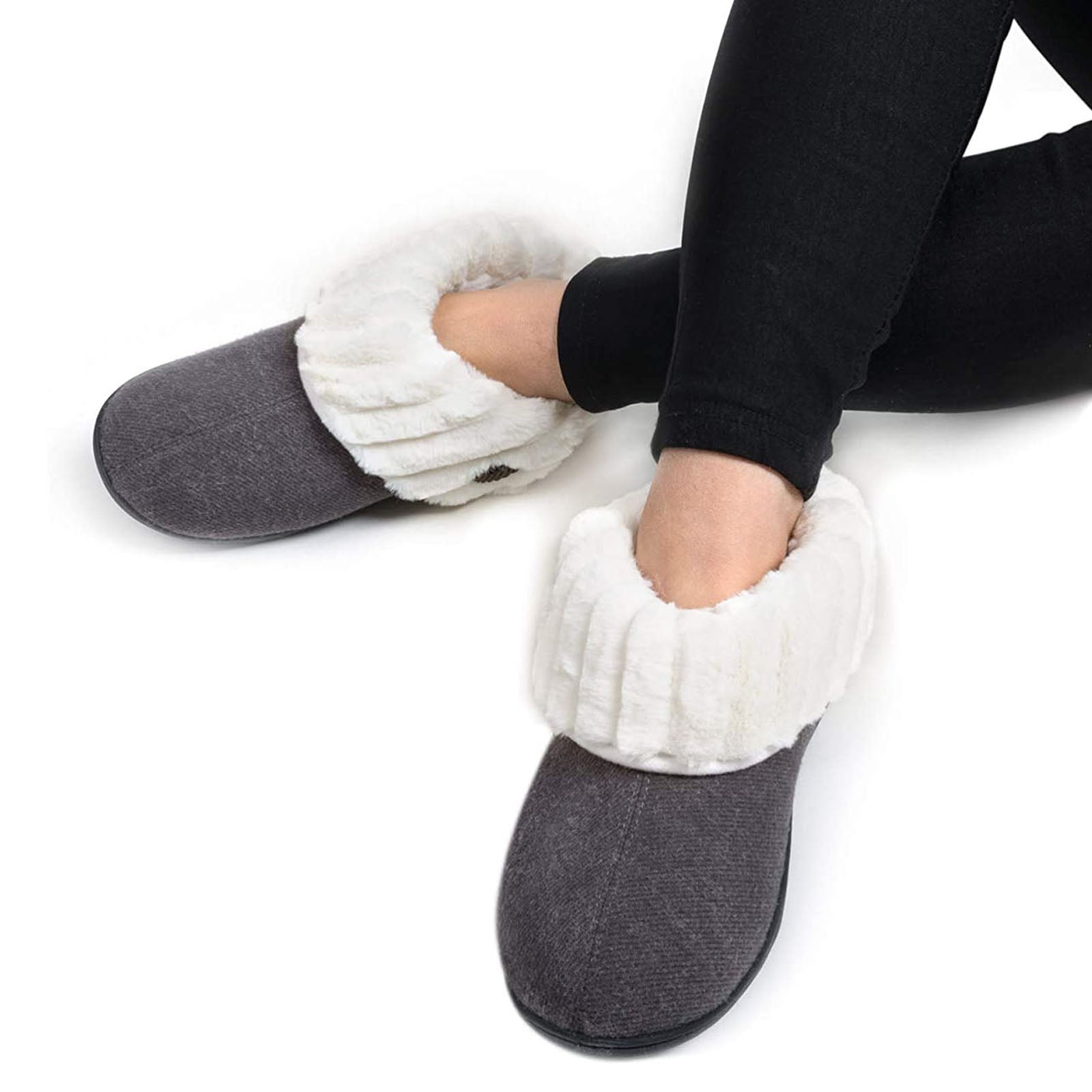 - Faux fur lining keeps your feet toasty warm, while wicking away moisture to keep them dry and odorless.