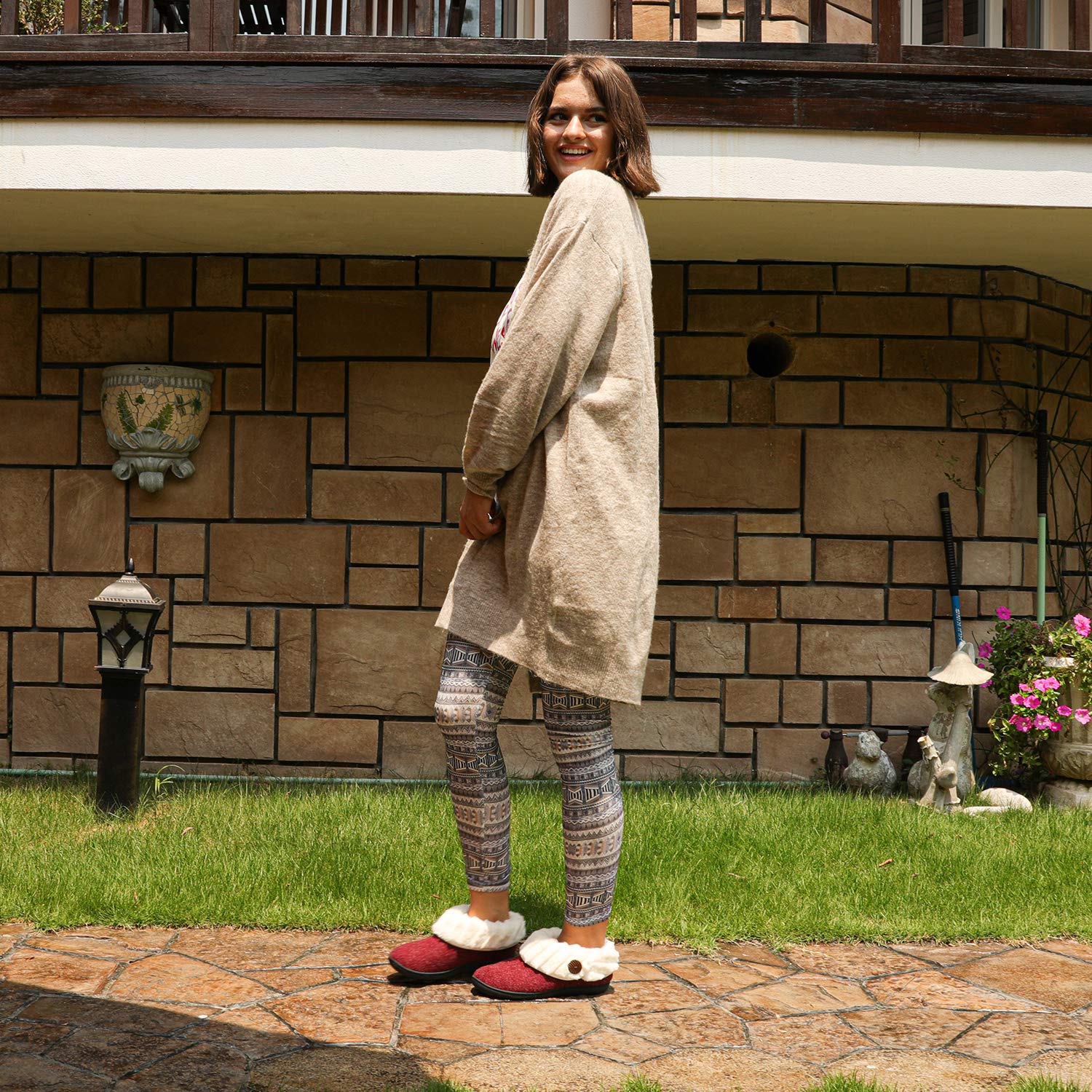 - Rubber soles with anti-slip traction lets you wear them indoor or out without the hassle of switching shoes.